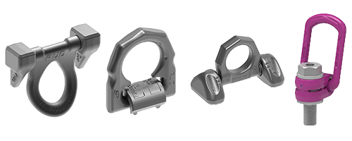 I punti di ancoraggio collegano l'area di carico con la catena di ancoraggio. I punti di ancoraggio di RUD sono disponibili sia in versione saldabile che avvitabile.